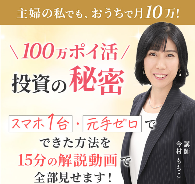 【100万ポイ活投資の秘密】は詐欺?講師の今村ももこ氏の口コミや実態を徹底検証!ポイ活後の「投資部分」が不明瞭な点や特商法表記の欠如など、潜むリスクと勧誘の実態を専門的に解説します。高額費用を払う前に必読!