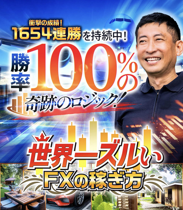 山口孝志氏監修「世界一ズルいFXの稼ぎ方(全勝スキャルFX)」を徹底検証。謳い文句の「勝率100%」は嘘?30万円超の料金に見合う価値はあるのか?特商法表記の欠如、提供者の過去の経歴、悪評・口コミから、このFX商材の危険性と実態を暴露します。購入前のリスク確認に必見です。