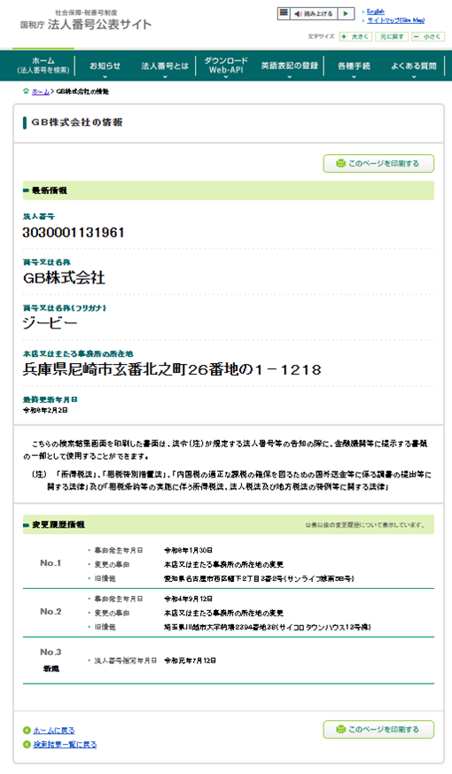 まずGB株式会社は法人登録されていることが確認でき、その所在地についても特商法表記に掲載されているものと相違ありません。