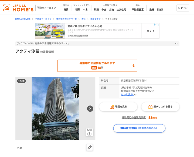 また所在地を調べてみると、該当するのは「高級タワーマンション」。住居として利用するには問題ありませんが、法人オフィスとして継続運営するには疑問符がつきます。