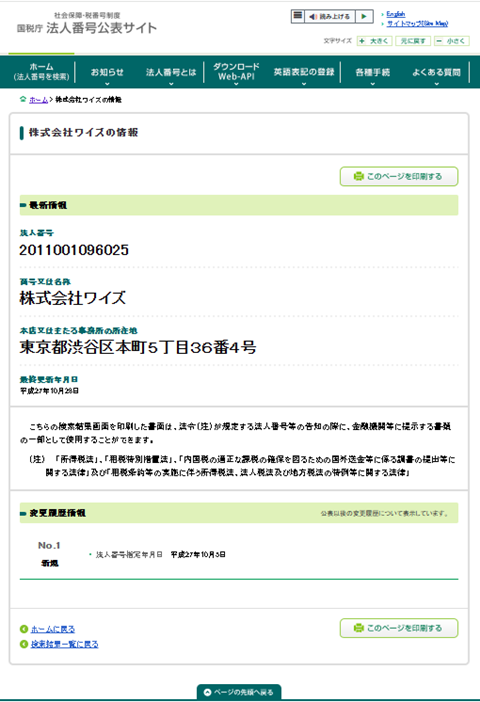 まず、株式会社ワイズですが法人登録はされているようです。