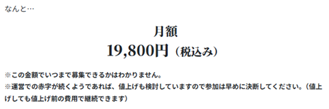 これらの手厚いサポートやコンテンツを提供すると謳われていますが、これらを享受するためには以下の月額費用が発生します。