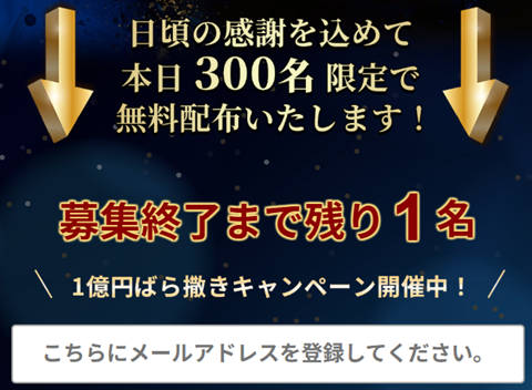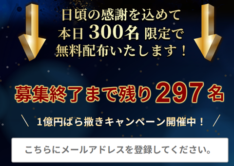 また、「300名限定での無料配布」と称し、募集終了までの「カウンター」が設置されています。