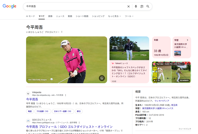 これらの高度な経歴を持つ人物であれば、専門的な論文や業界のニュースなどで容易に情報が確認できるはずです。しかし、実際に行ったネット検索では、ヒットするのはプロゴルファーの「今平周吾」氏に関する情報のみでした。