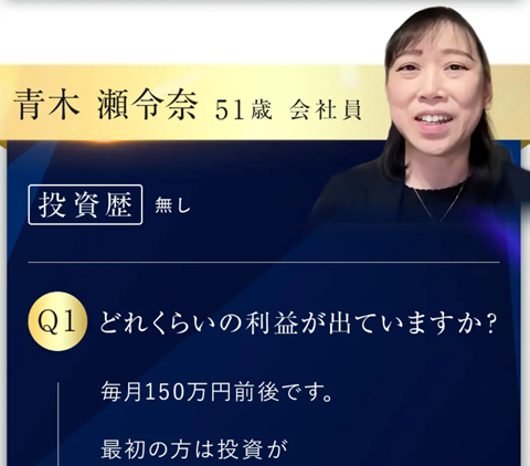 さらに、先行ユーザー事例として、またもや女子プロゴルファーの「青木瀬令奈」氏の名前が無断使用されており、動画にも登場するという、極めて悪質な手口が確認されました。