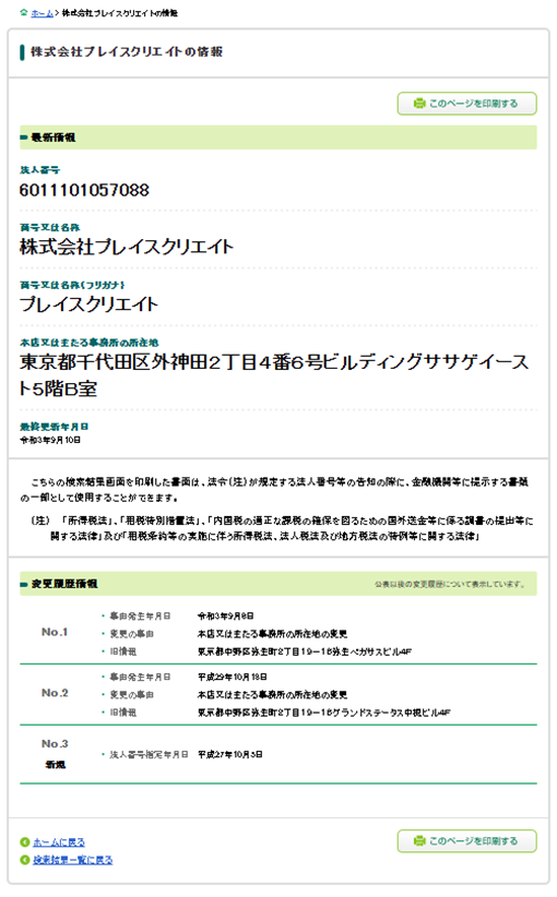 特商法表記と法人登録情報のアドレスは、同一のビル・フロアを指していますが、表記の正確性に軽微な相違点が存在します。法人登録情報では「5階B室」と具体的な部屋番号が明記されているのに対し、特商法表記では「5階」までしか記載されていません。