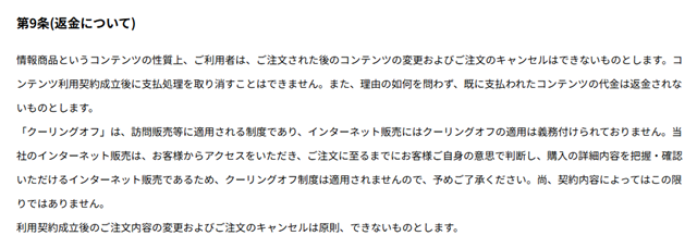 (中略)既に支払われたコンテンツの代金は返金されないものとします。