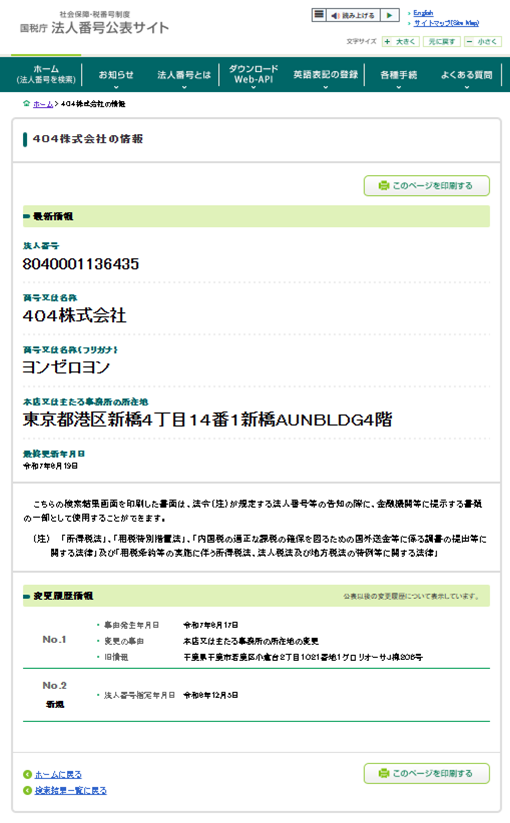 - 令和7年6月17日付で、本店が現在の特商法表記の住所(東京都港区新橋の新橋AUN BLDG 4F)へ正式に移転登記されています。