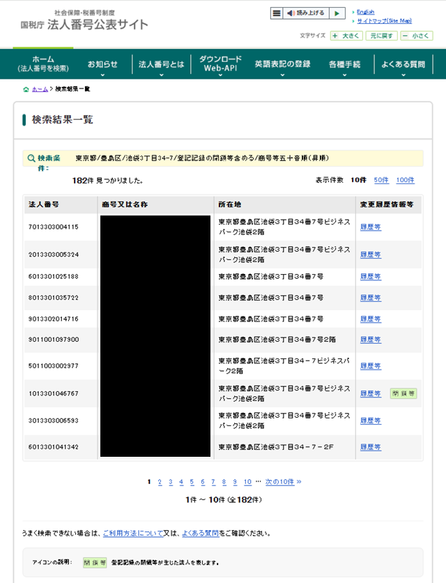 サイトに記載された所在地を深掘りすると、さらに不可解な点が浮き彫りになります。その住所には、なんと182社もの法人が登記されていることが分かりました。