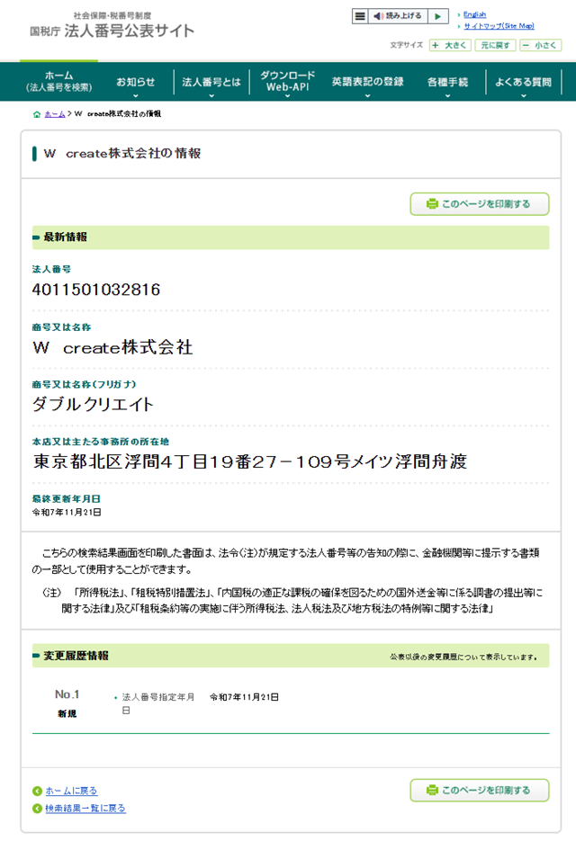 - 法人番号指定年月日: 令和7年11月21日