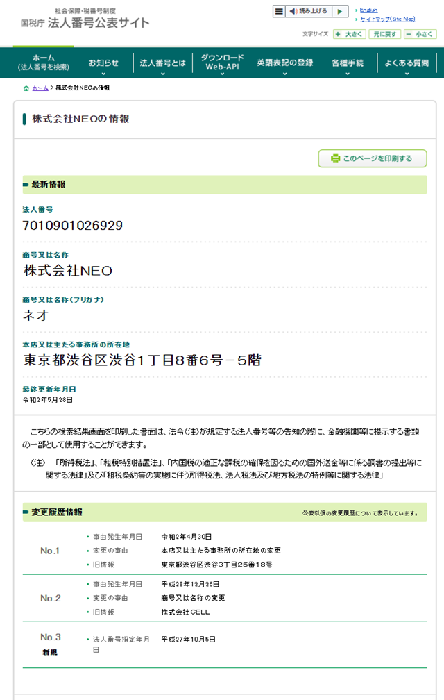 法人登記を確認すると、株式会社NEOはかつて「株式会社CELL」という名称で運営されていました。