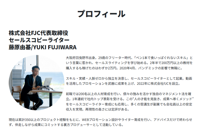 講師を務める藤原由基氏のプロフィールには、以下のような経歴が並んでいます。