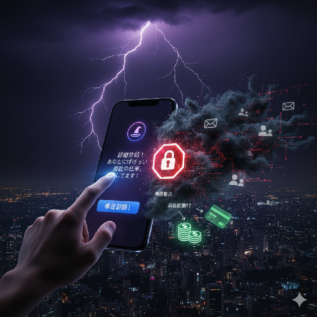 オプトインアフィリエイトの仕組みを徹底解説。なぜ「無料診断」が高額詐欺案件への誘導口となるのか?具体的な被害事例や、LINE・メールアドレスを登録する法的リスクを解説。悪質な手口から身を守る自己防衛策も紹介します。